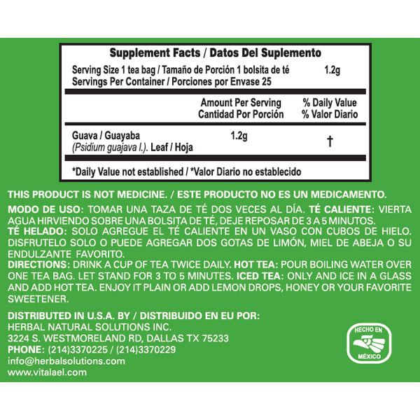 Digestive calm is synonymous with confidence. For those days when your stomach feels off-kilter, nature holds an ancient secret: the guava leaf. Vitalael Guava Leaf Tea brings you this wisdom in a comforting infusion. Traditionally used for generations to support intestinal balance and regularity, this tea is a balm for your digestive system.* Every sip is a step toward comfort and tranquility, helping you regain the harmony you need to carry on with your day without worry.